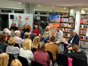 Es war sicherlich eine der am besten besuchten Veranstaltungen in den vergangenen Jahren in der Stadtbibliothek Bergkamen: Zur zweiten Auflage des Bergkamen Talk am Dienstag, 13. Januar, kamen gut 100 Zuschauer. Obwohl der Baubetriebshof noch 35 Stühle extra gebracht hatte, reichten die Sitzgelegenheiten so gerade aus, dass alle einen Platz fanden.